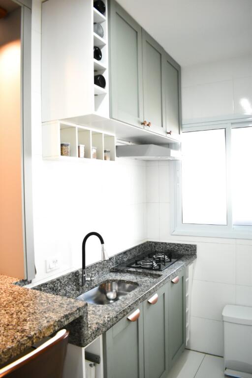 1 dormitório, sala, cozinha, área de serviço e banheiro;
