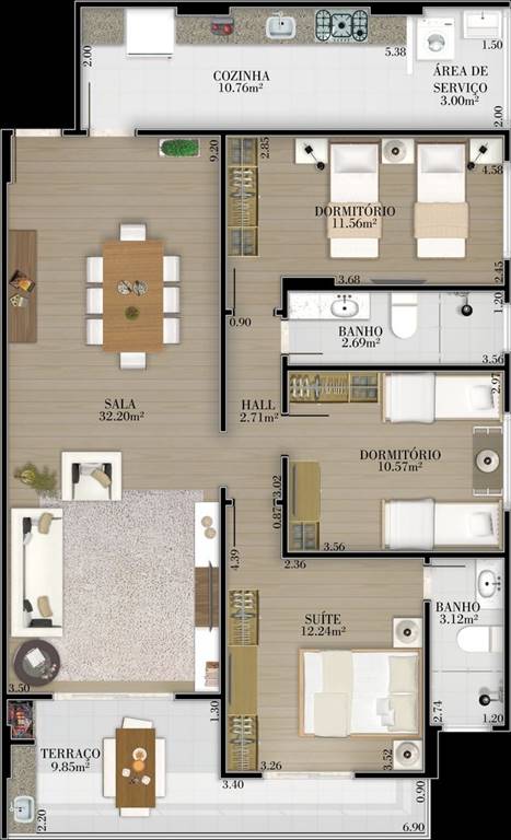 Área Útil86,00m²