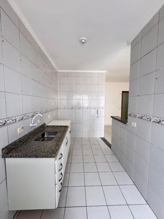 1 dormitório, sala ampla, cozinha americana, sacada livre, área de serviço, banheiro e 1 vaga de garagem