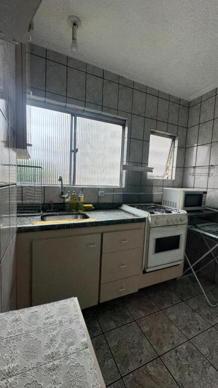 1 dormitório na quadra da praia, sala, cozinha, banheiro e 1 vaga de garagem