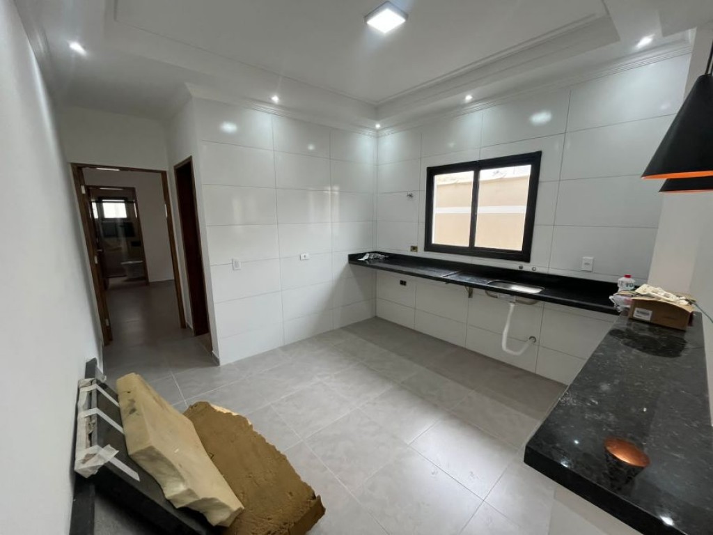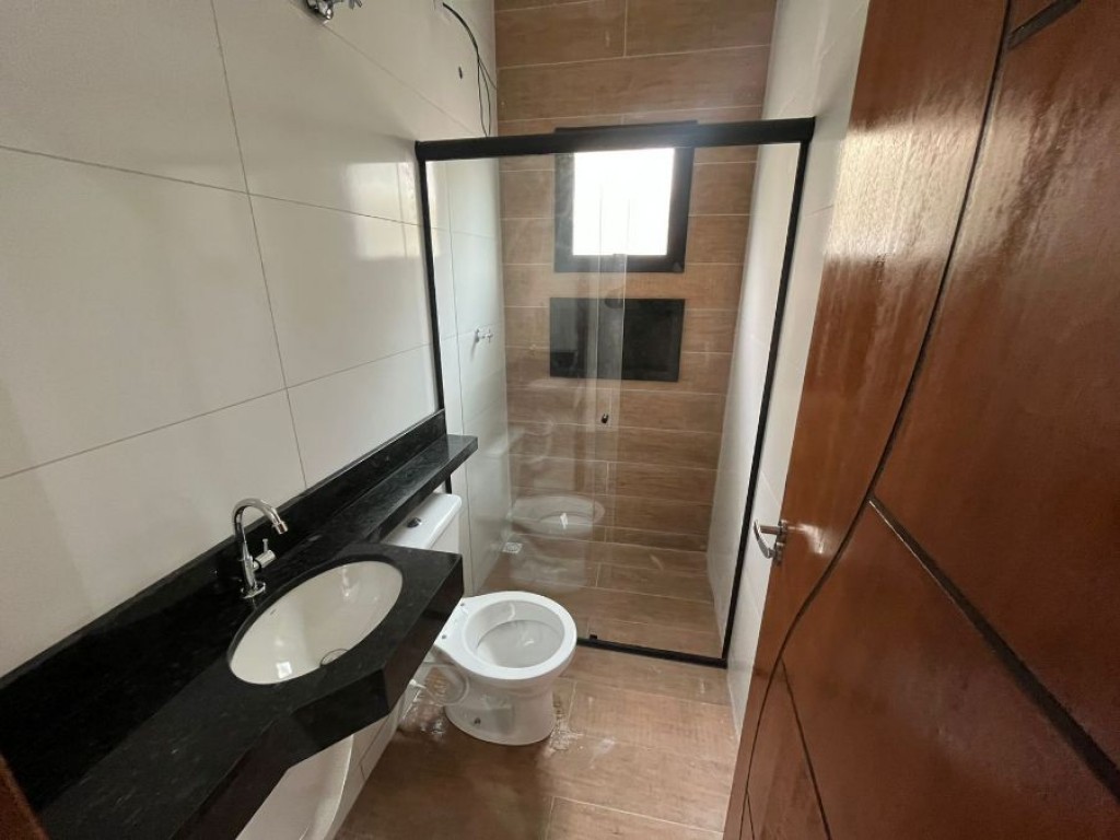 2 dormitórios sendo 1 suíte, sala, cozinha, banheiro, área de serviço e 2 vagas de garagem.