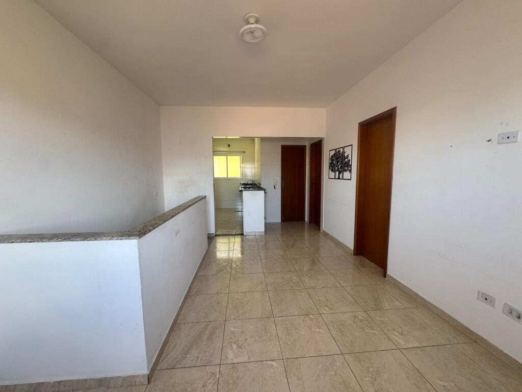 O apto fica no primeiro andar, e tem 2 dormitórios, banheiro, sala e cozinha. O prédio tem garagem coletiva
