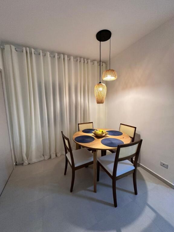 1 dormitório, sala, cozinha planejada, área de serviço e banheiro;