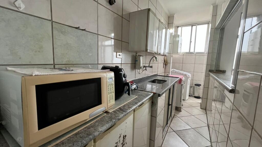 1 dormitório grande, sala com sacada, cozinha, área de serviço e banheiro;