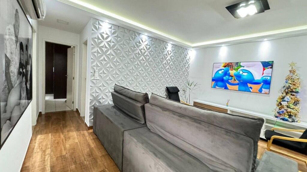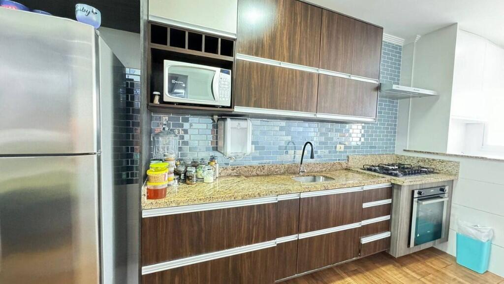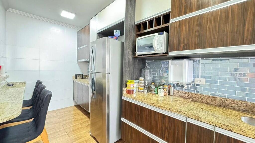 2 dormitórios ambos suítes, sala, cozinha, banheiro e 1 vaga de garagem