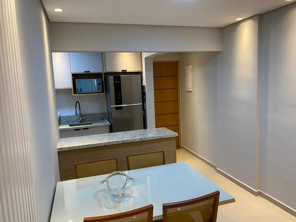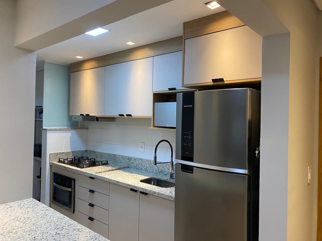 02 dormitórios sendo 02 suítes, sala, cozinha americana, área de serviço com móveis planejados e banheiro;