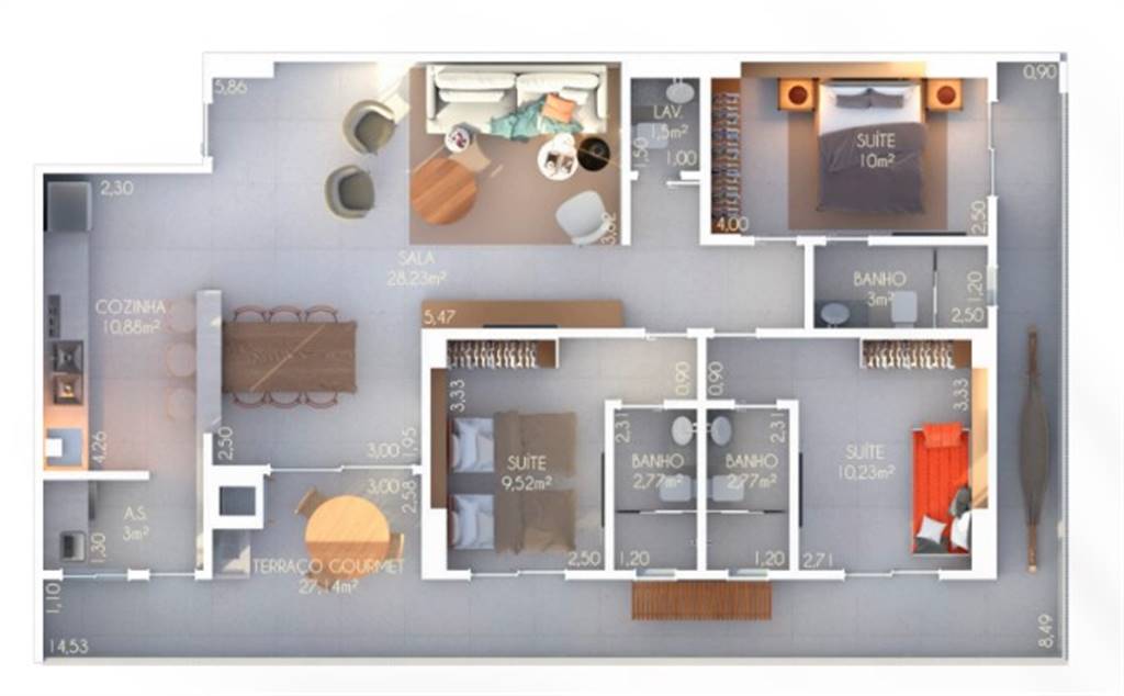 • Área Útil